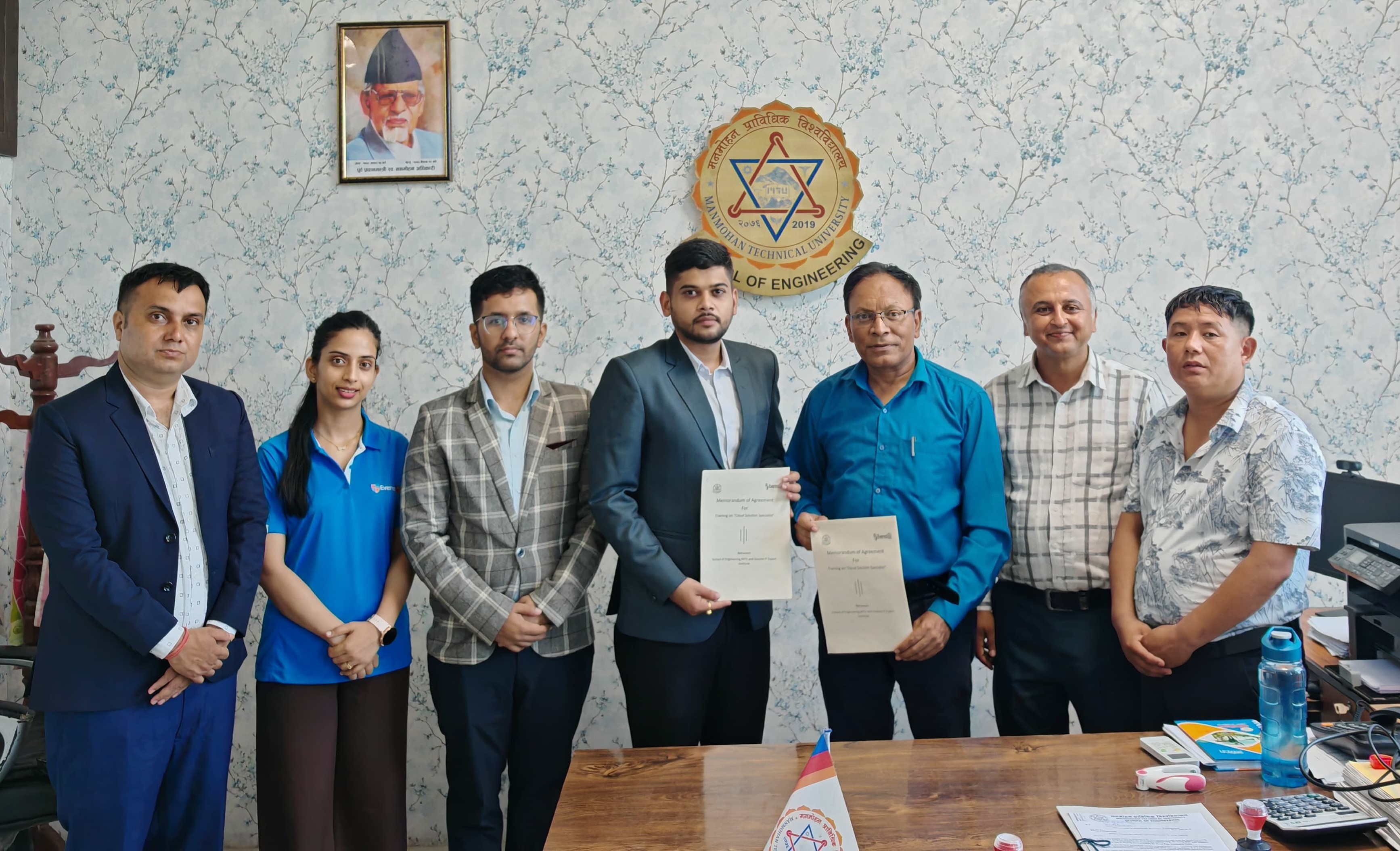 A Memorandum of Agreement was signed between the School of Engineering, Manmohan Technical University (SOE, MTU) and Everest IT Expert Institute on June 13, 2025, at the office of the Dean, School of Engineering, in the presence of officials from both organizations.