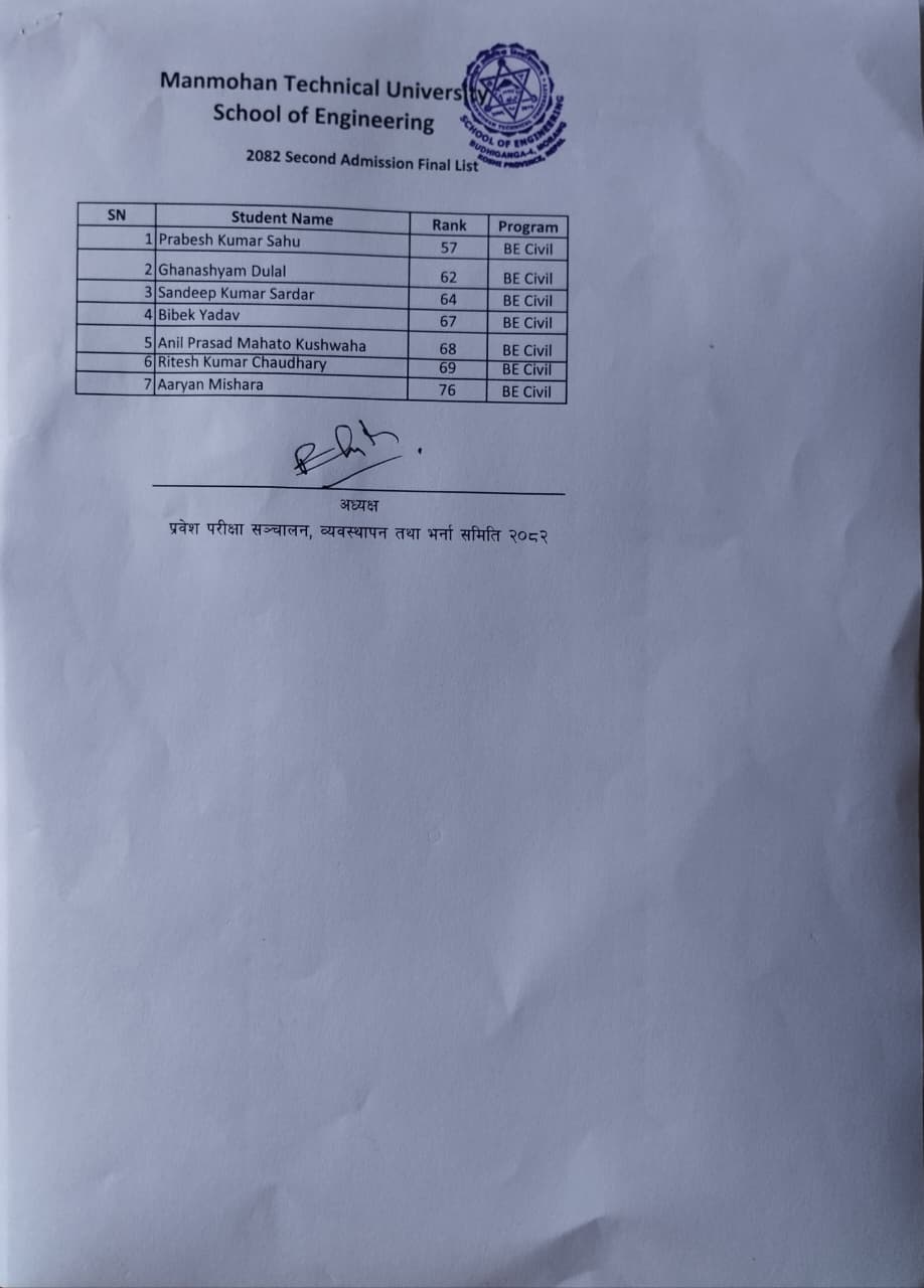 2082-06-12 (28-09-2025) दोश्रो भर्ना सुचीको अन्तिम सुची प्रकाशन तथा भर्ना सम्बन्धी सूचना ।