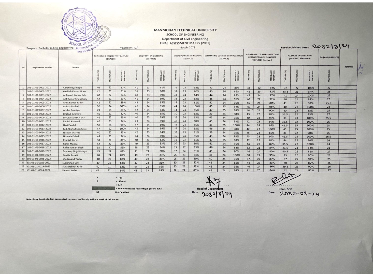 2082-08-24(10-12-2025 )आन्तरिक मुल्याङ्कनको नतिजा (Final Internal Assessment) प्रकाशन सम्बन्धी सूचना ।