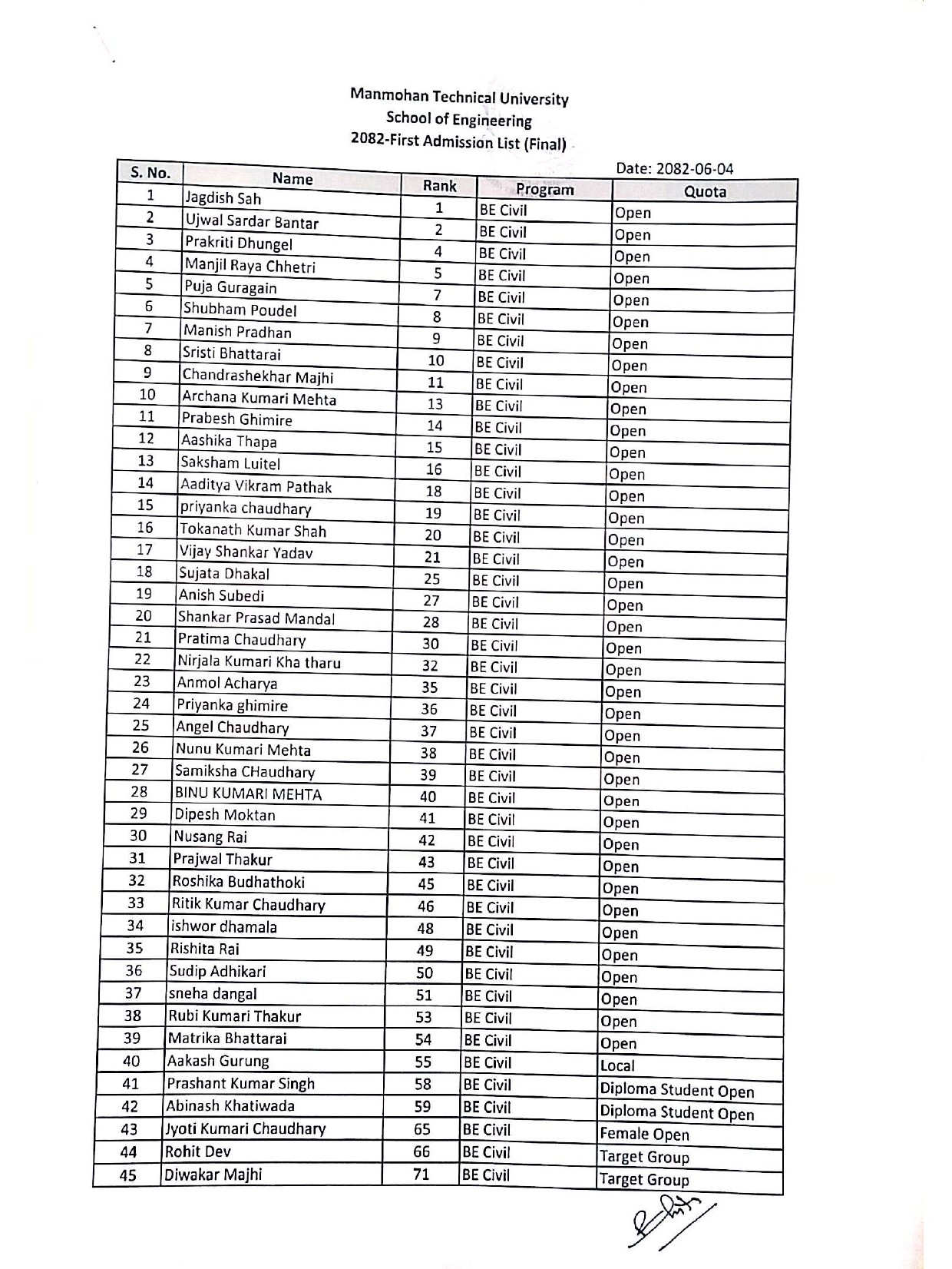 2082-06-04 (20-09-2025) प्रथम भर्ना सुचिको अन्तिम सुची प्रकाशन तथा भर्ना सम्बन्धी सूचना ।
