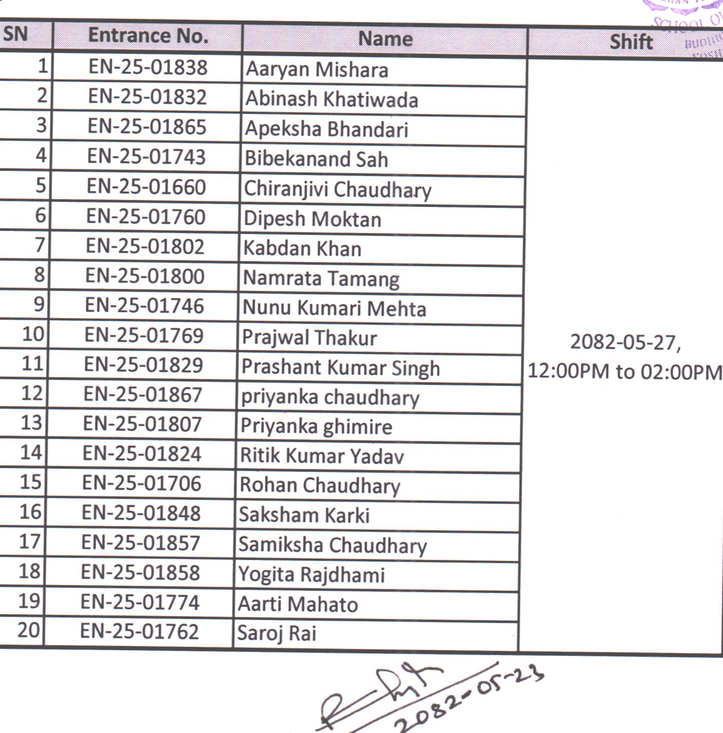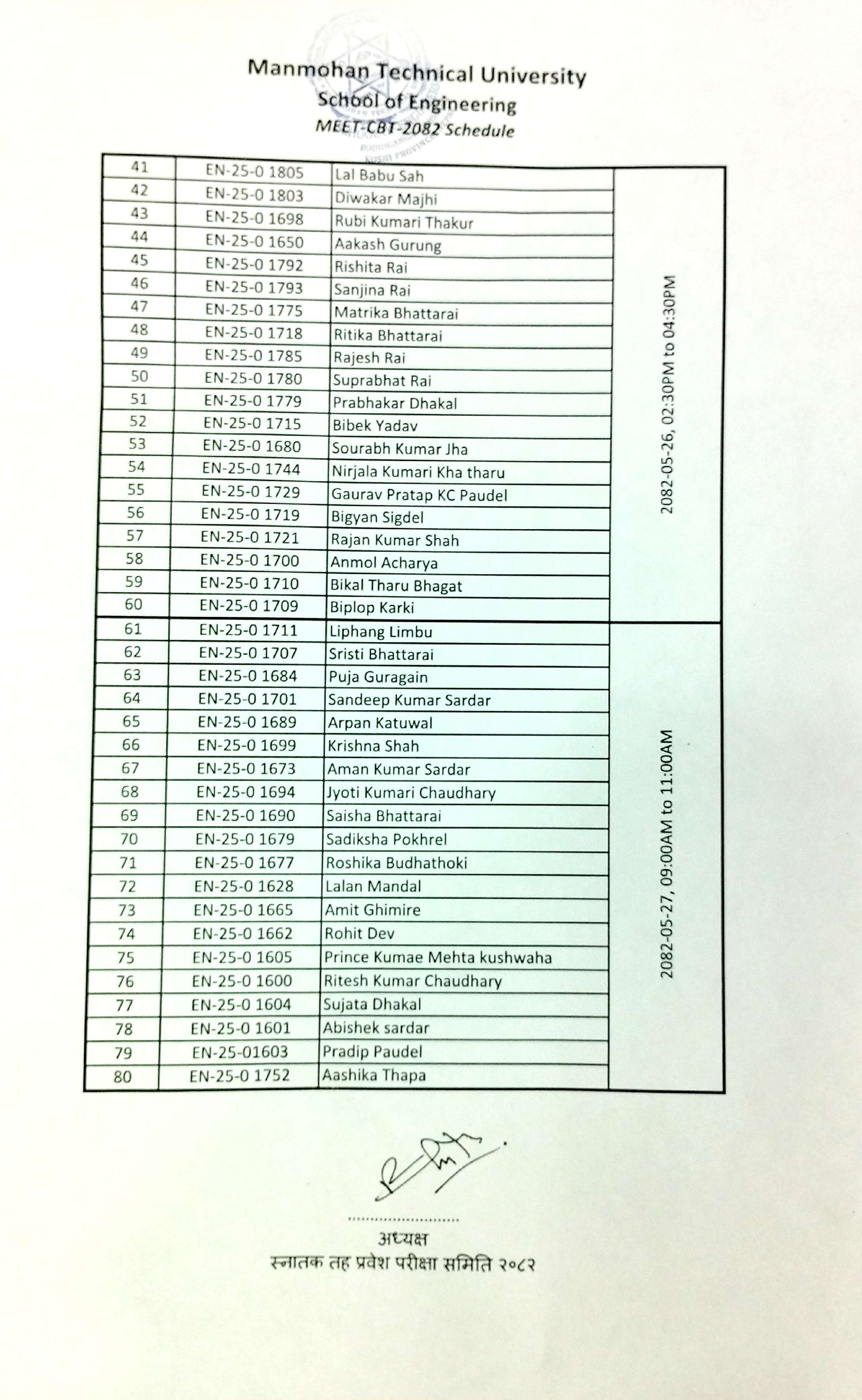 2082-05-20 (05-09-2025) स्नातक (वि.ई.) तहको प्रवेश परीक्षाको विस्तृत तालिका सम्बन्धी सूचना ।