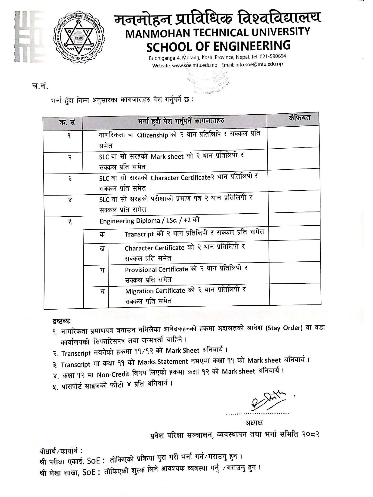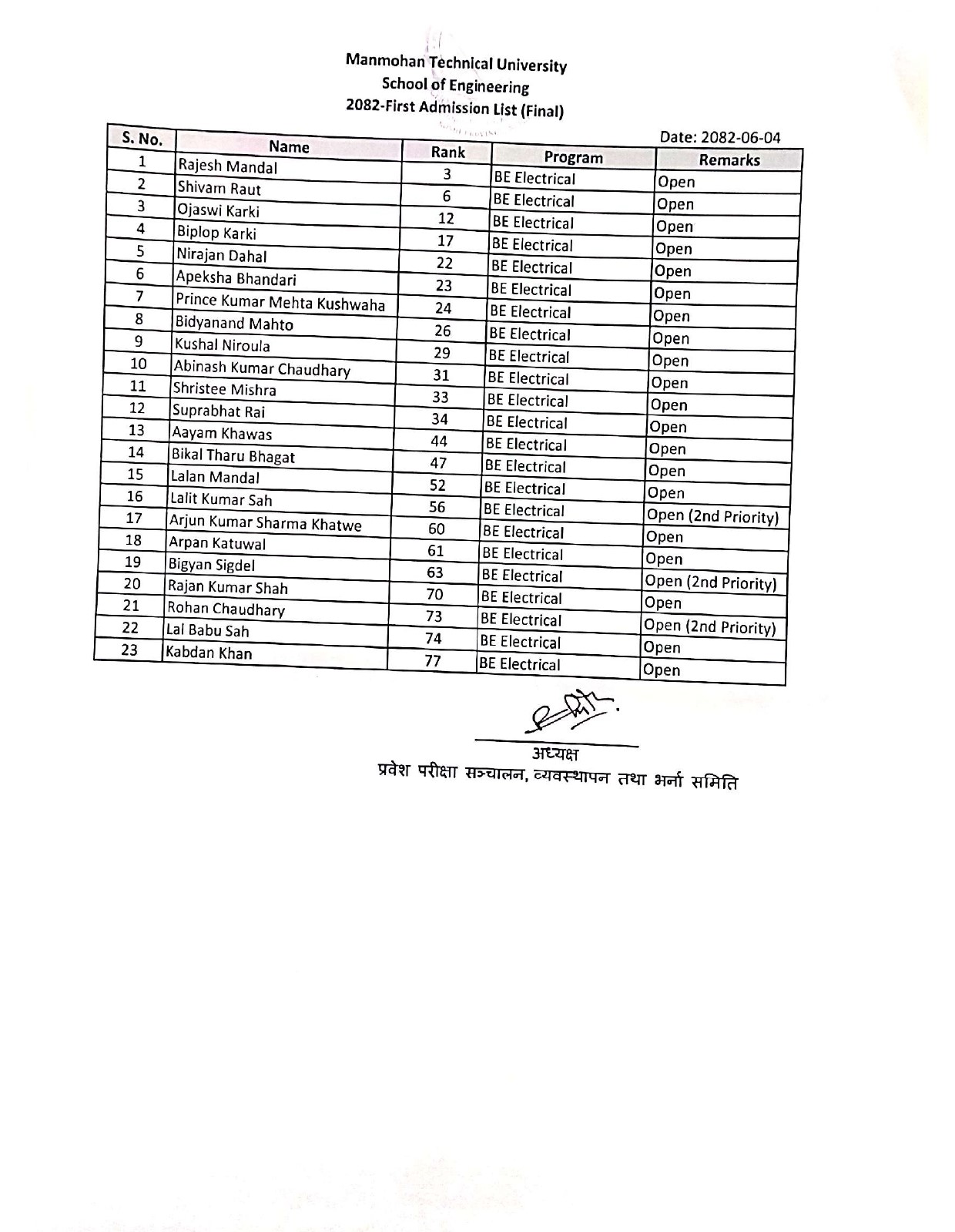 2082-06-04 (20-09-2025) प्रथम भर्ना सुचिको अन्तिम सुची प्रकाशन तथा भर्ना सम्बन्धी सूचना ।