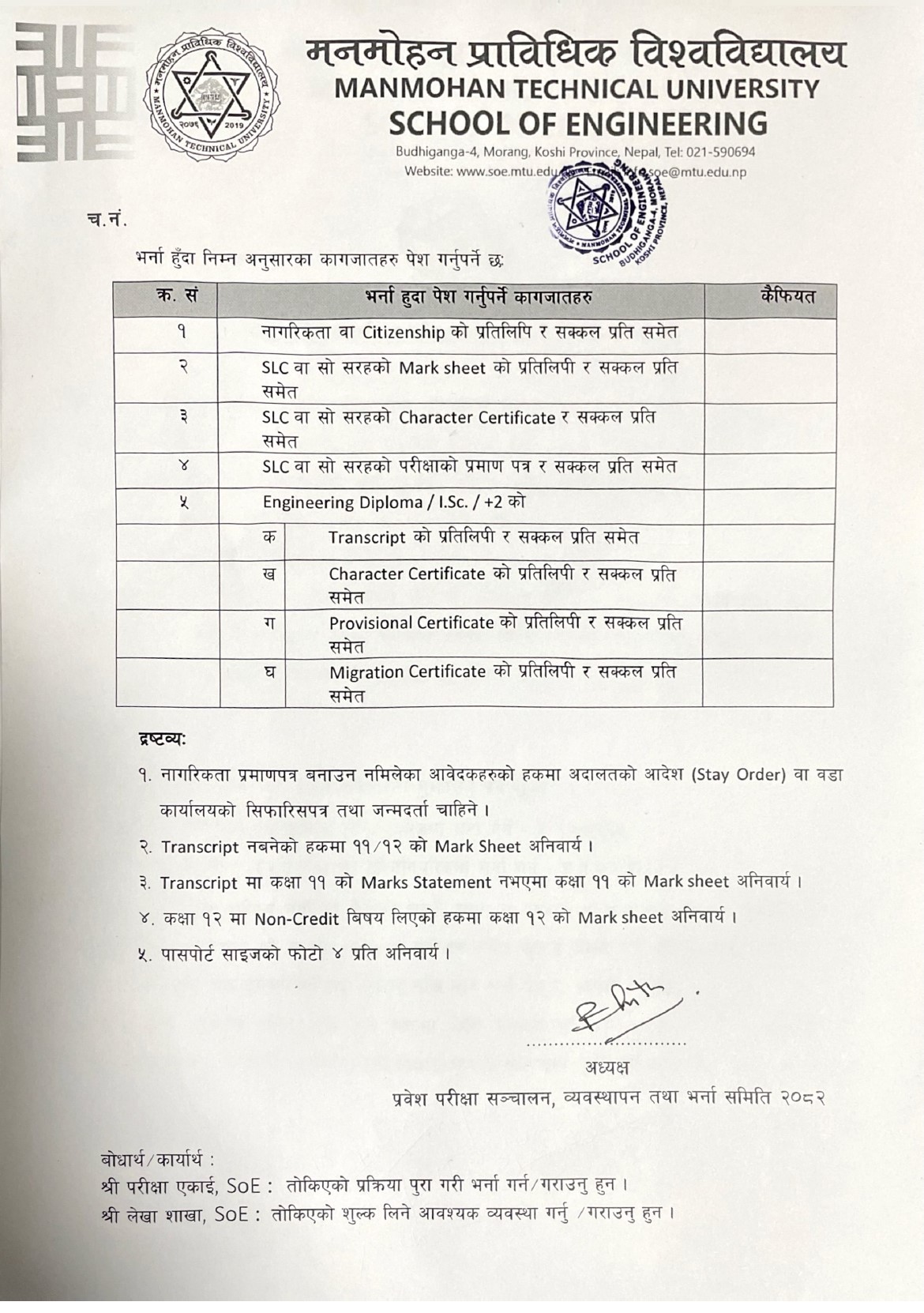 2082-07-17 (03-11-2025) पुन : प्रवेश परिक्षाको आन्तिम सुची प्रकाशन तथा भर्ना सम्बन्धि सूचना ।